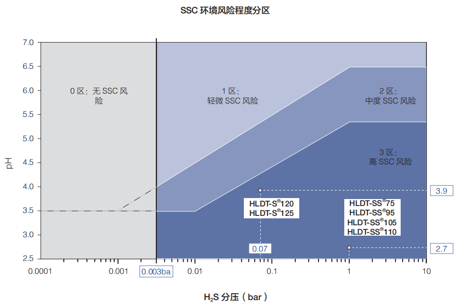 ·HLDT-SS®75、HLDT-SS®95、HLDT-SS®105、HLDT-SS®110 系列抗硫化氫鉆桿是在 HLDT-MS75、HLDT-MS95、HLDT-MS105/ HLDT-S®75、HLDT-S®95、HLDT-S®105 基礎上開發(fā)出的海隆第二代抗硫鉆桿產(chǎn)品,該產(chǎn)品滿足 IRP1.8 和 NACE TM0177 A 法 A 溶液要求,可用于任意硫化氫井況;