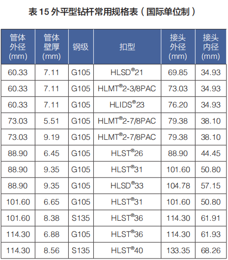 ·海隆外平型鉆桿的接頭外徑接近或等于管體外徑,具有接頭外徑小、鉆桿撓性好的特點,可應(yīng)用于無法使用常規(guī)鉆桿的小井眼,適用于修井、開窗側(cè)鉆等作業(yè)。